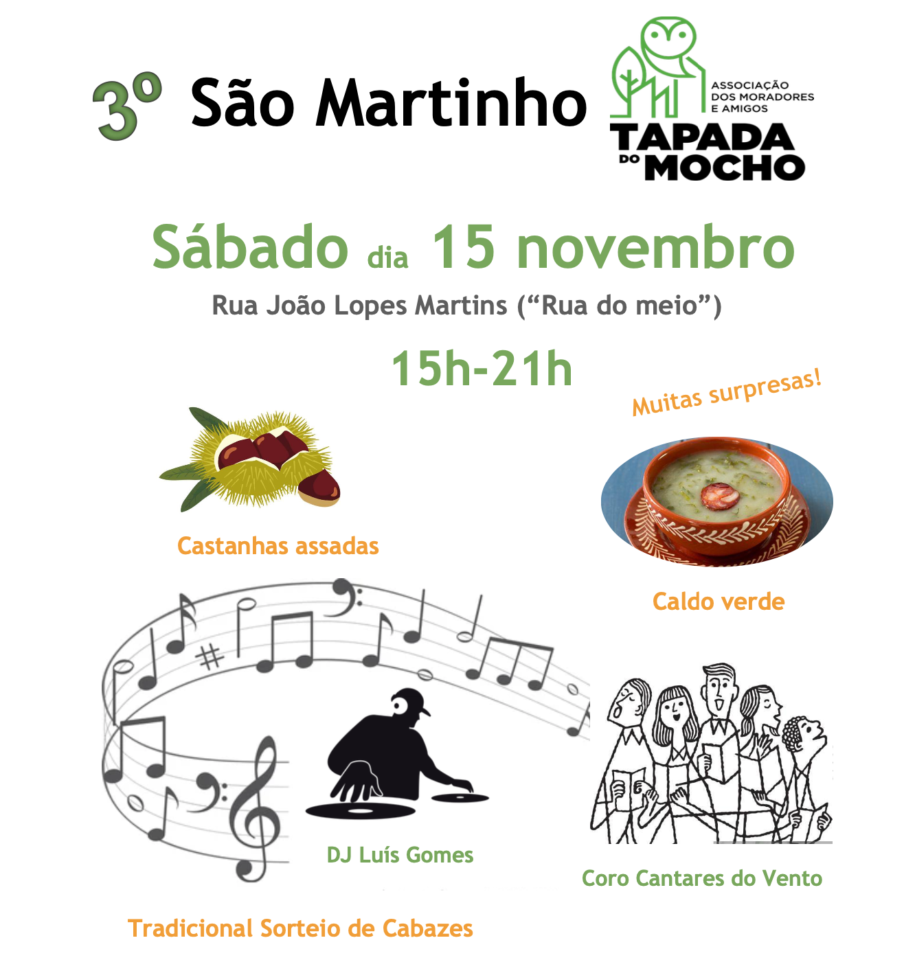 Vamos aquecer o outono com castanhas assadas, caldo verde, música, boa disposição e muitas surpresas.